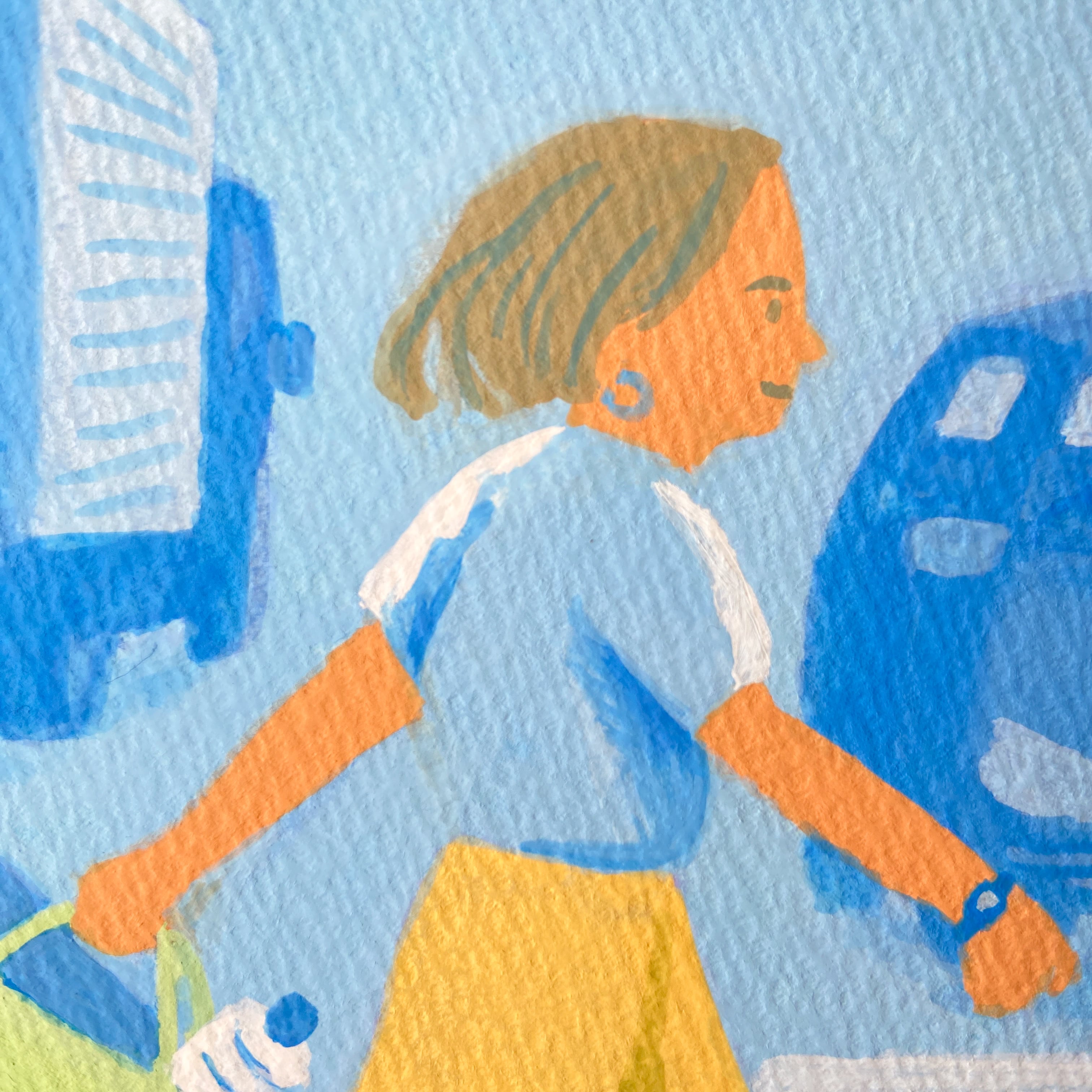 忙しくても前向きな気持ちで仕事に向かう人を描きました。