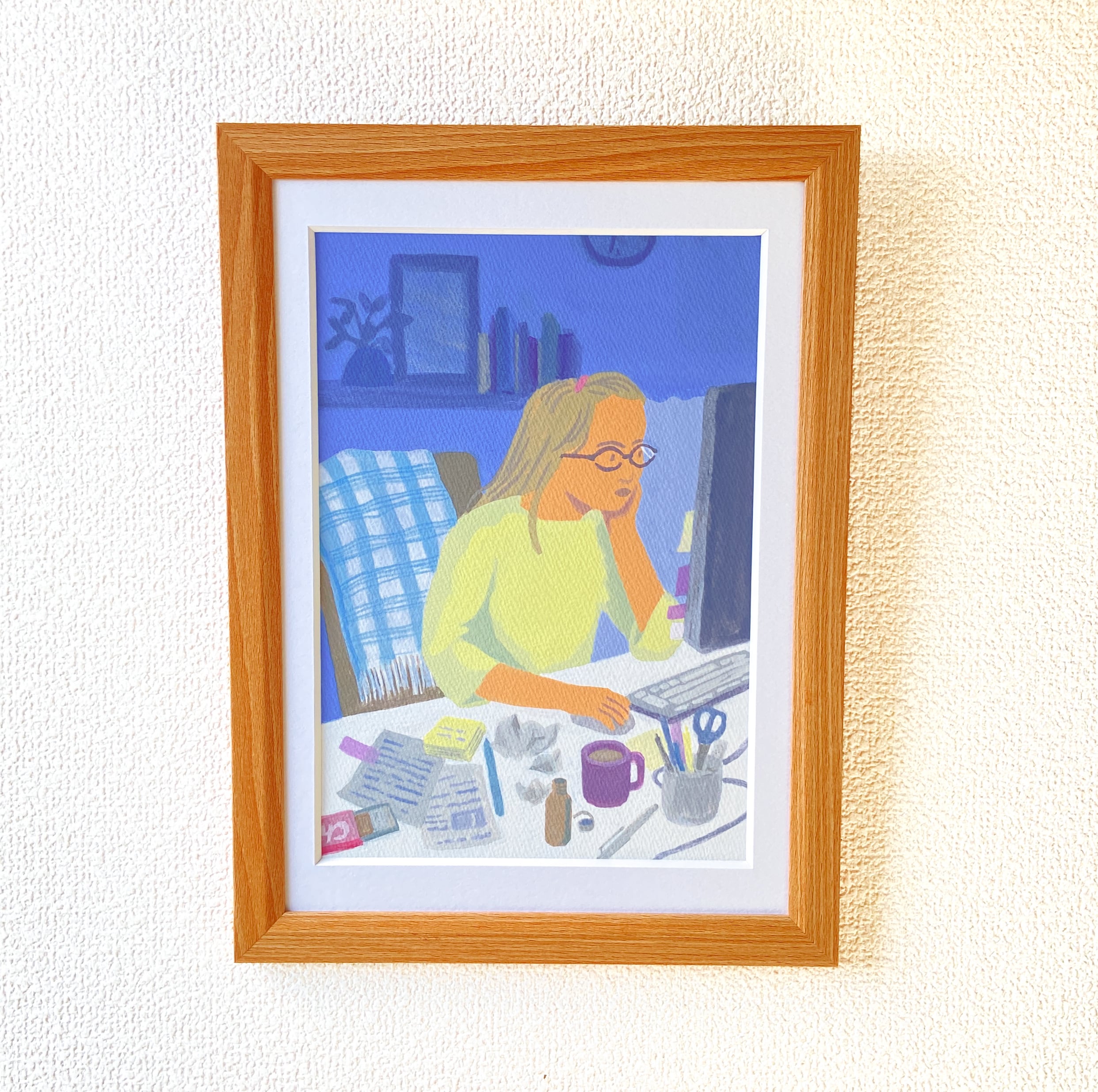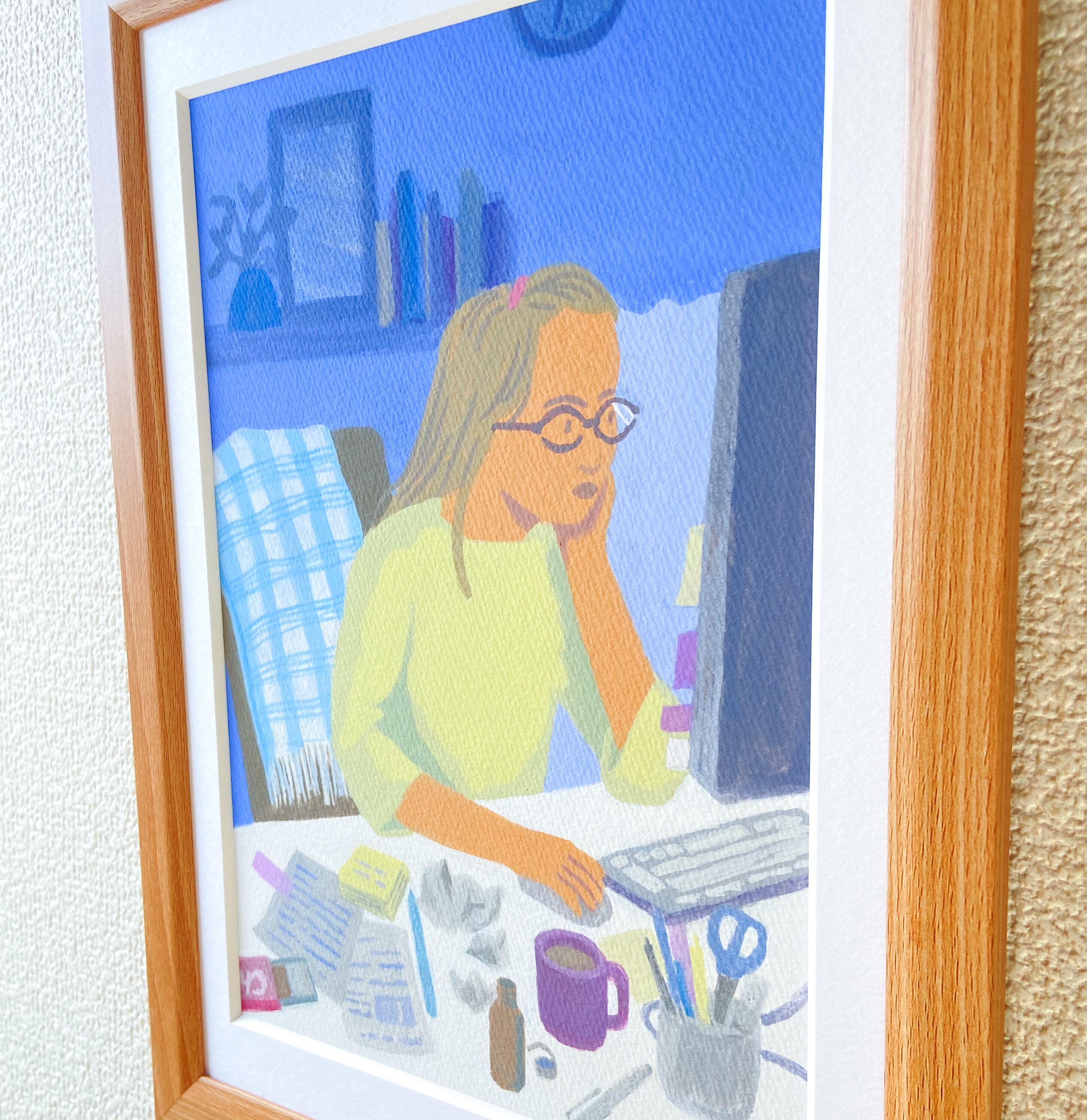 マット付き原画 A4サイズ 「在宅仕事」